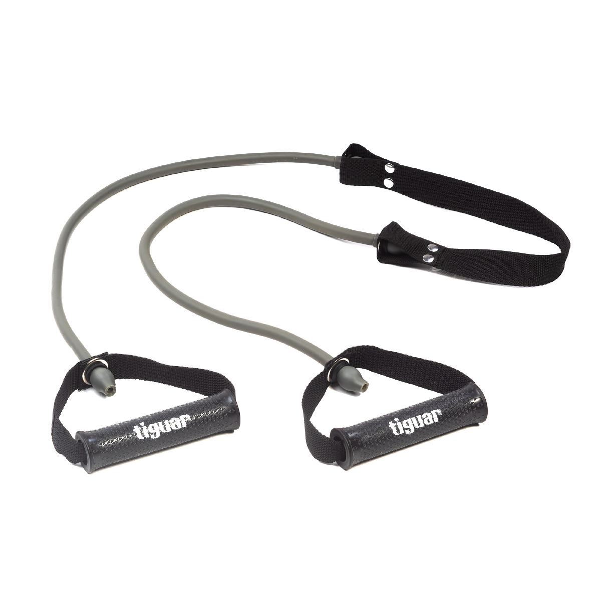 Tubing (also known as expander) is a versatile piece of equipment designed for upper body strengthening workouts. The resistance of the rubber during stretching forces the muscles to work and therefore improves their strength and endurance. The fact that you can select a tubing with light, medium and heavy resistance allows you to choose the degree of load to match your own level, and also offers the possibility of rapid progression by reaching for a stronger and stronger rubber as you progress.