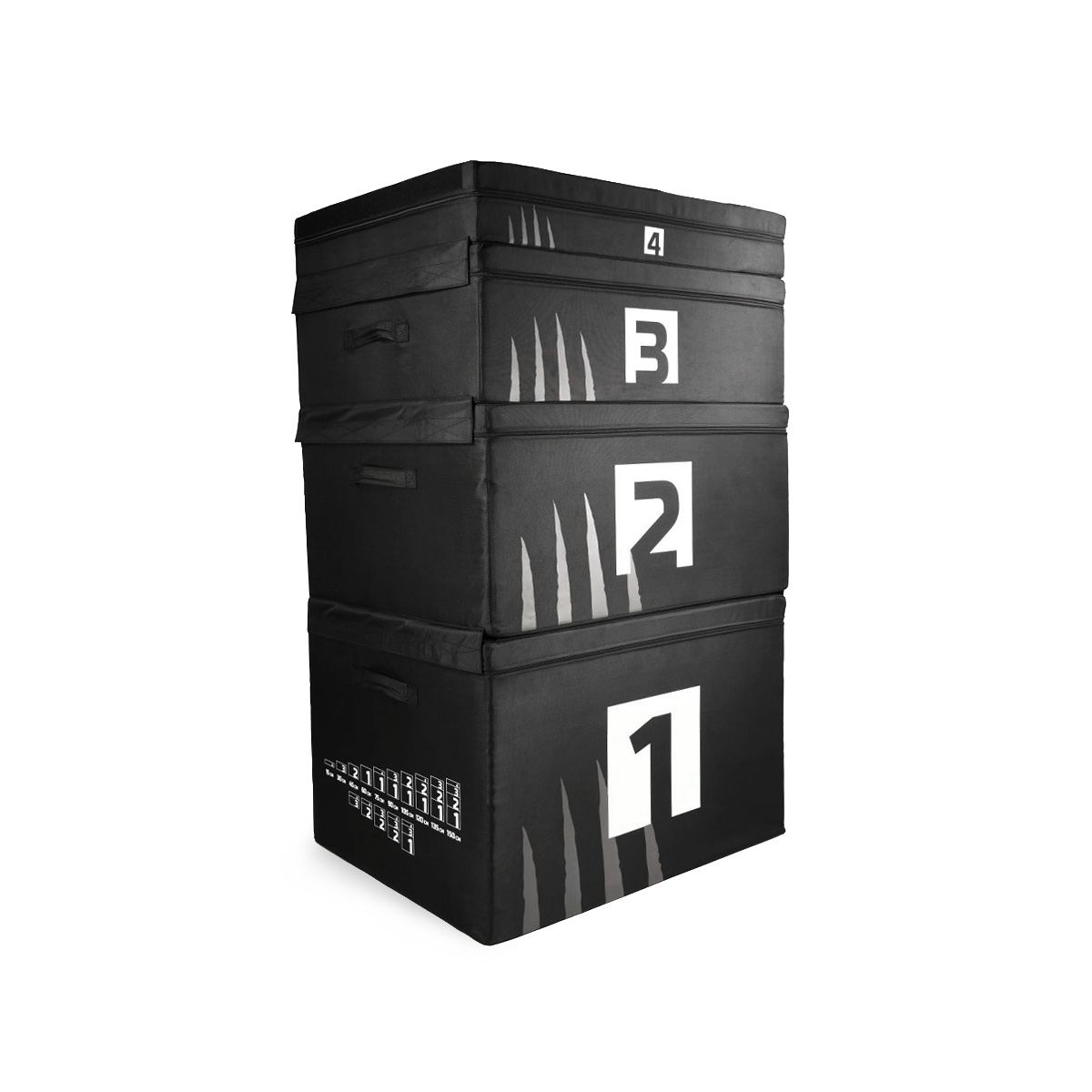 The tiguar plyometric box is made of high-density impact-absorbing foam, which prevents sudden strains occurring in the joints, plus adds to its stability. In the latest design of our box we also used reinforced stitching and even stronger Velcro combining all the independent parts of the plyo soft box together. Thanks to this solution, you can freely stack the individual boxes to achieve the desired height – the maximum height that the box can reach is as high as 150 cm. This size allows professional athletes to perform specialized jump workout, which would not be possible on a standard wooden box.