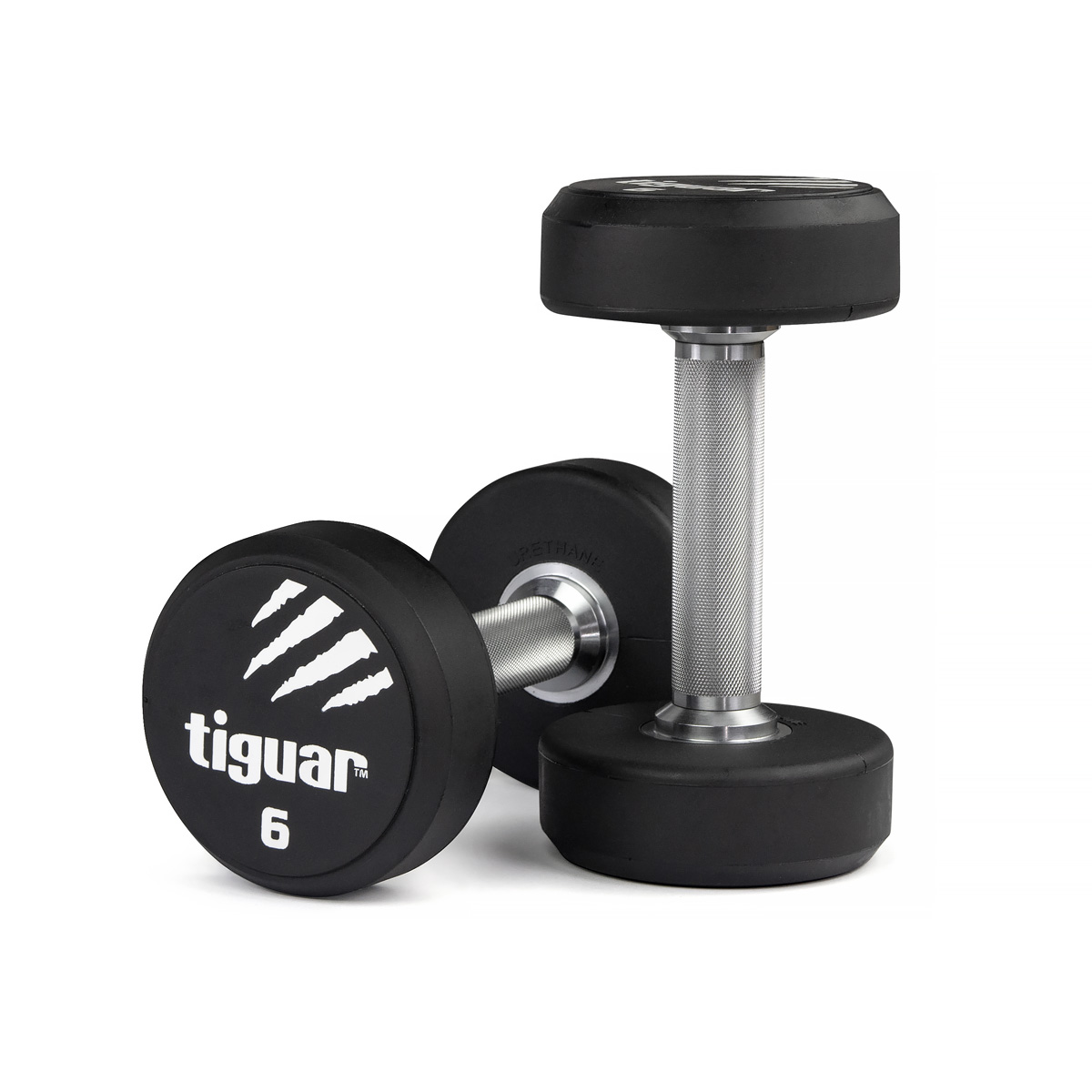 The line of tiguar PU dumbbells is characterized by a straight bar of equal length (15.2 cm) and knurled surface, which provides better control of the dumbbells, while reducing the risk of your hand slipping on the grips during exercise. Their predatory design gives them an extra flair and emphasizes their unique aesthetics that fit into the atmosphere of any gym or fitness club, while being compatible with other tiguar accessories manufactured using polyurethane.