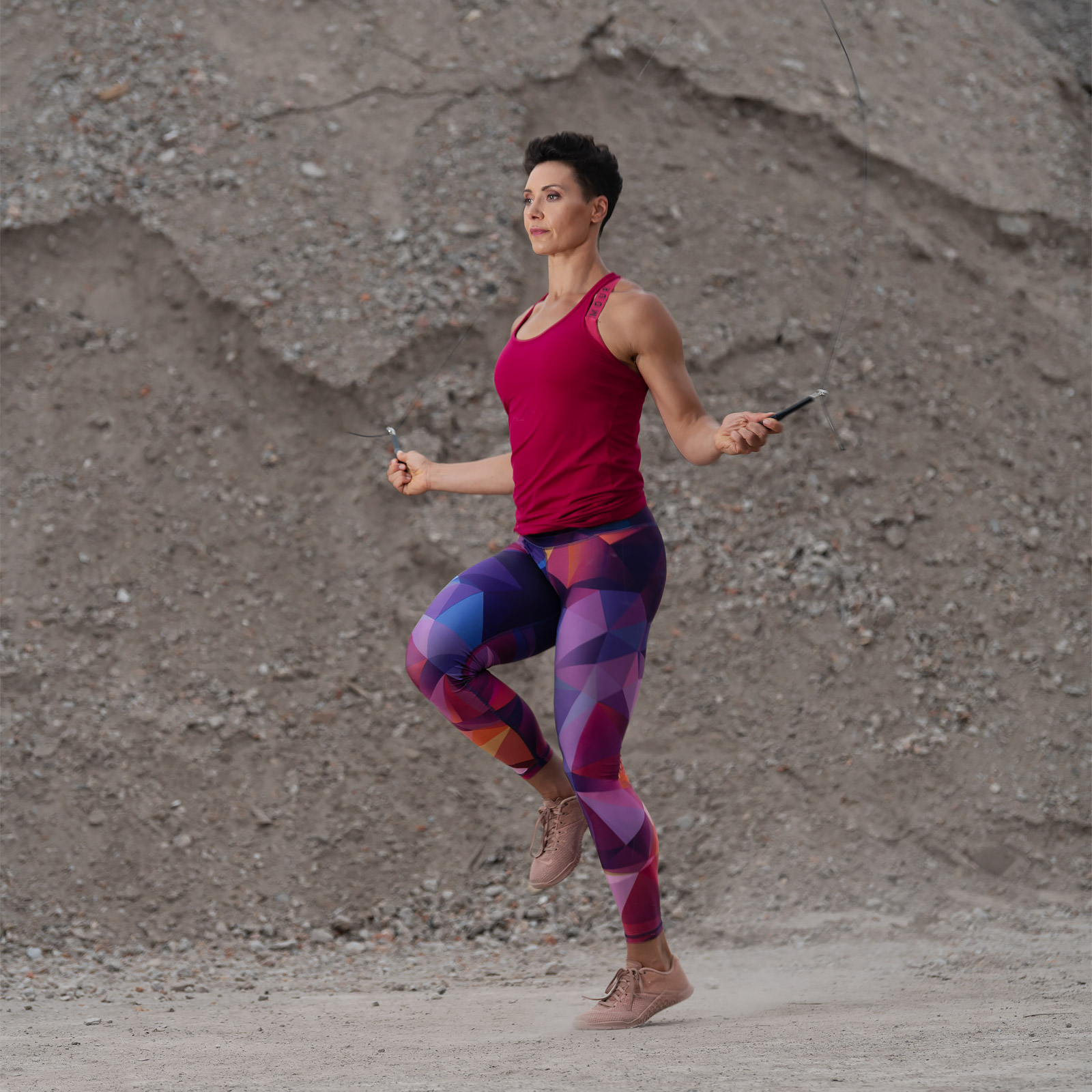 Working out with a skipping rope seems trivial, but when performed regularly, it lets you develop a very good physique as a result of burning a lot of calories, and it also effectively builds better stamina and fitness. The whole body – its upper and lower muscle groups, as well as the entire core – is engaged in exercises with a skipping rope.