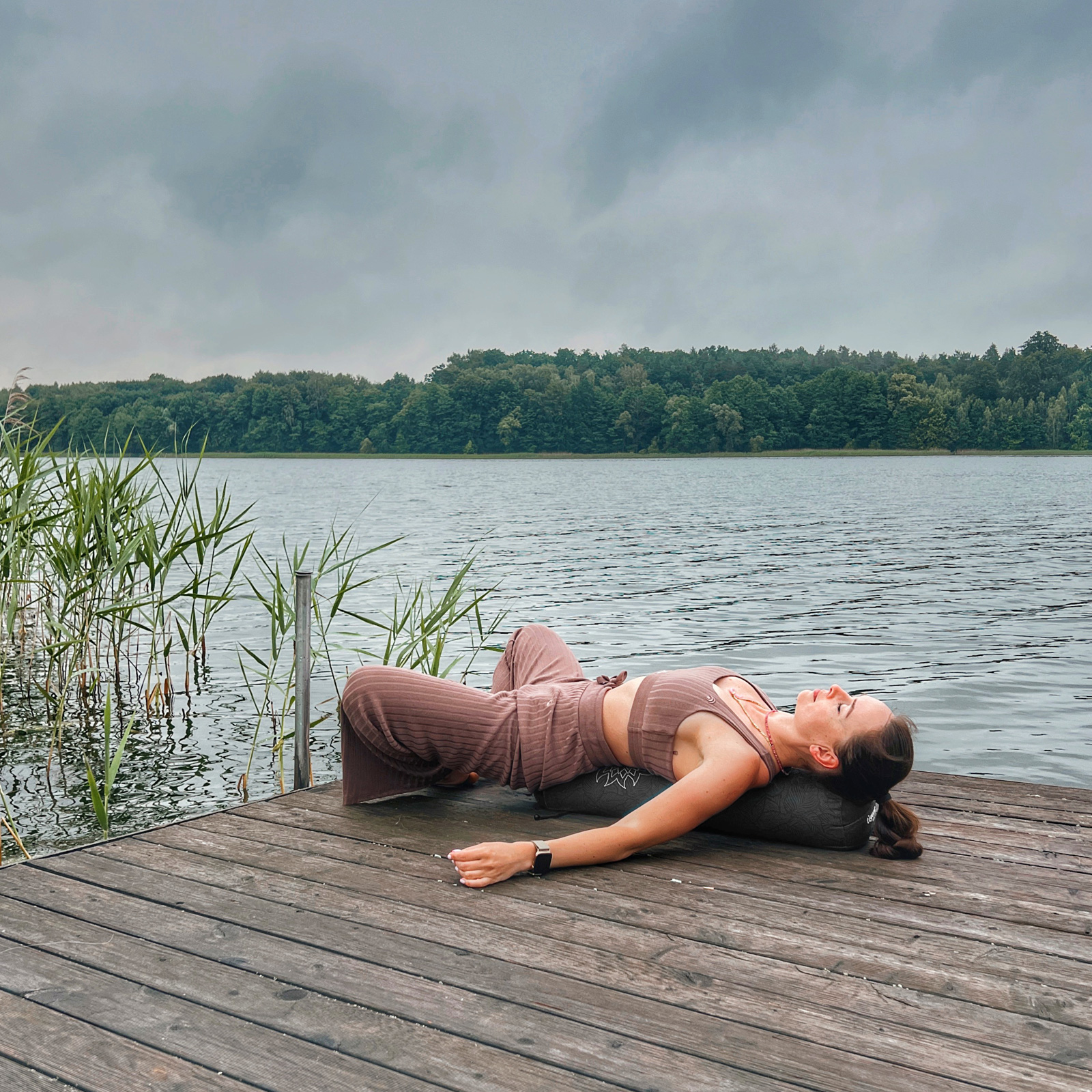 The yoga blanket is perfect as an aid in many asanas, and also during relaxation as a covering. You can put the folded blanket under your head or back in lying positions, use it in seated and inverted positions, and it will also be helpful in kneeling positions for those with more sensitive knees. Due to its neutral color, the blanket is easy to keep clean.