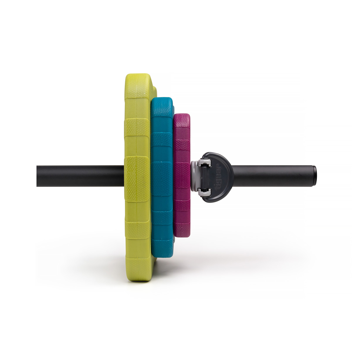 The set consists of a straight barbell weighing 1.8 kg, two clamps, and a set of plates with weights of 1.25 kg, 2.5 kg and 5 kg, and the maximum weight of the barbell with the full load attached is 19.5 kg. The product is an ideal choice for both beginners and more advanced athletes who want to intensify their training using free weights with adjustable loads. The solution will be great for group training, circuit and functional workouts.